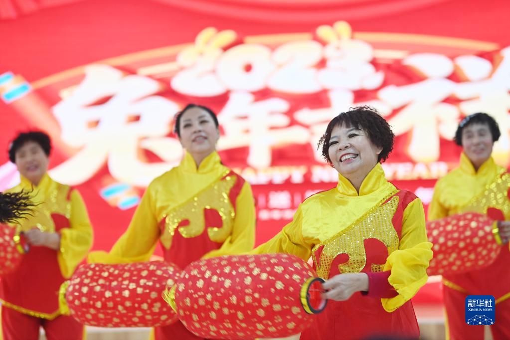 1月14日,在天津市西青區辛口鎮馮高莊村,村民表演舞蹈節目。