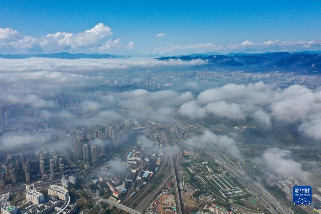 最近,福州連續(xù)出現(xiàn)平流霧景觀。霧中榕城若隱若現(xiàn),宛若仙境。