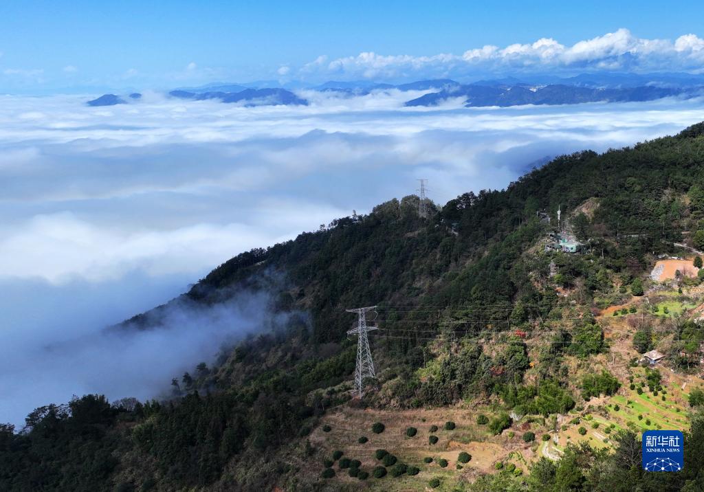 1月14日在福州市晉安區(qū)鼓嶺拍攝的平流霧景觀(無人機(jī)照片)。