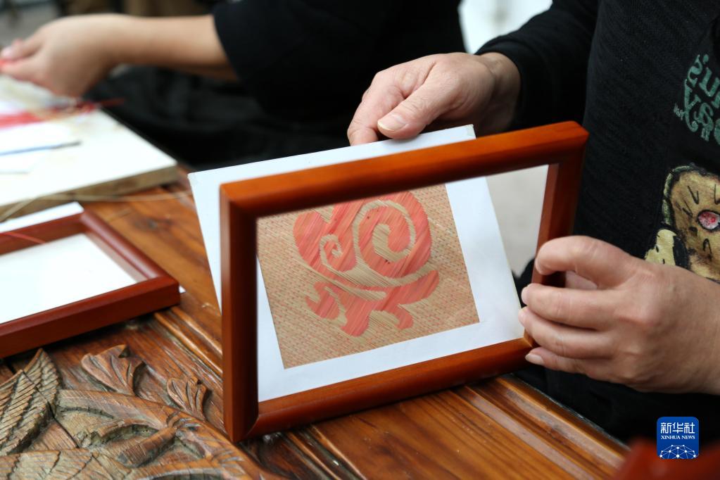 1月12日,工人將制作好的“福”字竹編裝框,準備銷售。