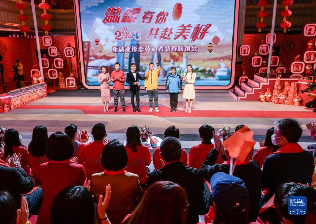 當日,由中華全國總工會文工團與中國財貿輕紡煙草工會聯合主辦的“溫暖有你 共赴美好”新就業形態勞動者新春聯誼會在北京舉辦。聯誼會通過歌曲、舞蹈、相聲、詩朗誦、鋼琴演奏等藝術形式,突出喜慶、溫暖、美好的主基調。部分節目還邀請新就業形態勞動者與演職人員同臺表演,為廣大新就業形態勞動者送去新春祝福。