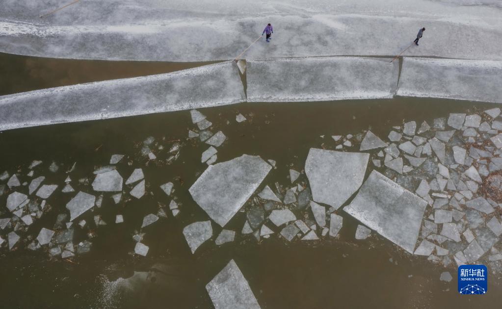 1月14日,河北省唐山市豐南區(qū)黑沿子鎮(zhèn)的農民在河道內采集冰塊。