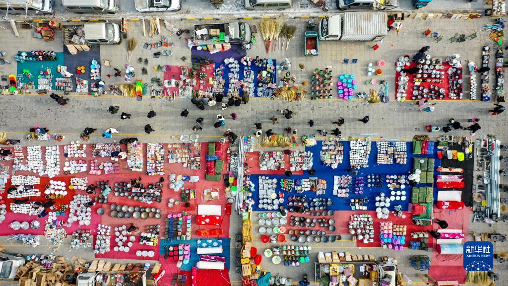當日是農歷小年,寧夏銀川市賀蘭縣百年鄉(xiāng)村大集金貴大集上貨品琳瑯滿目,洋溢著濃濃年味,吸引人們前來選購年貨。