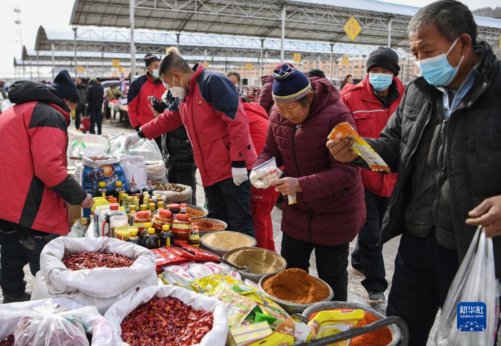 當(dāng)日是農(nóng)歷小年,陜西省延安市寶塔區(qū)青化砭鎮(zhèn)的年貨大集熱鬧非凡,眾多村民到此趕大集、辦年貨。