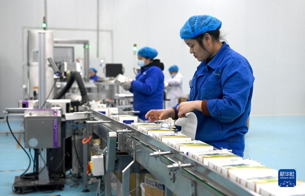 1月13日,西安市閻良區秦龍乳業集團有限公司的工人在羊奶粉生產線上作業。