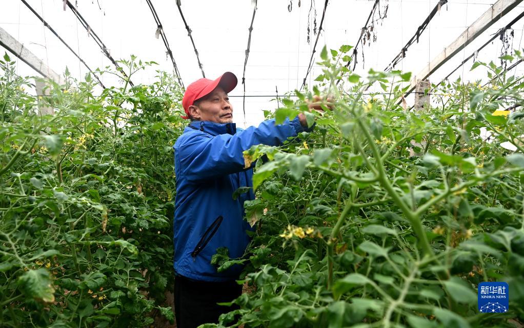 1月13日,工人在西安市高陵區(qū)何村的蔬菜大棚里管護(hù)蔬菜。