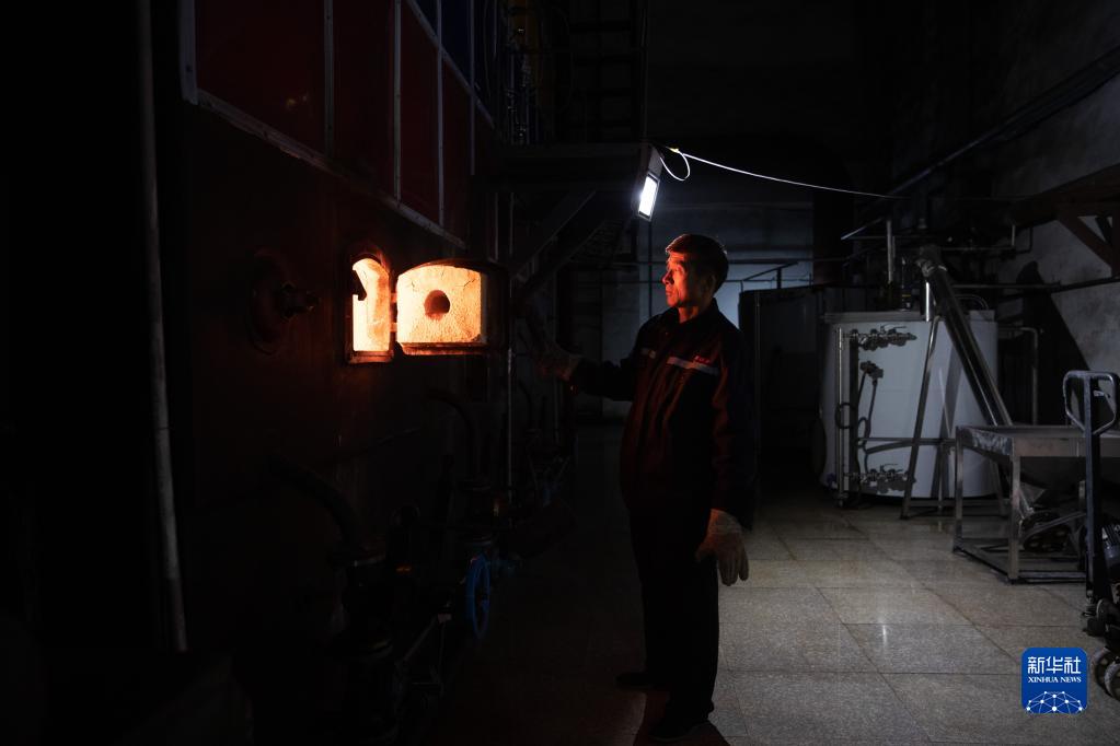 1月12日,司爐工丁俊旺在漠河華美供熱有限公司鍋爐房內(nèi)作業(yè)。