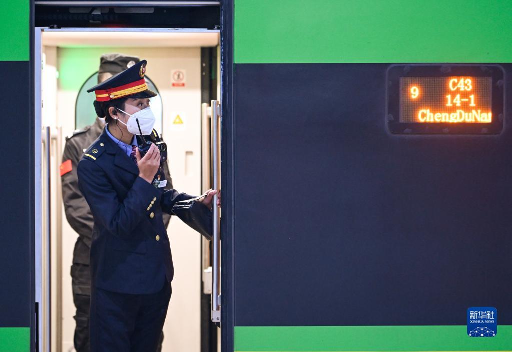 1月11日,在成都火車南站,阿依布卡(前)呼叫司機關閉車門。