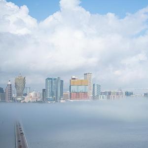 當日,澳門出現大霧天氣,樓宇在霧氣中若隱若現。