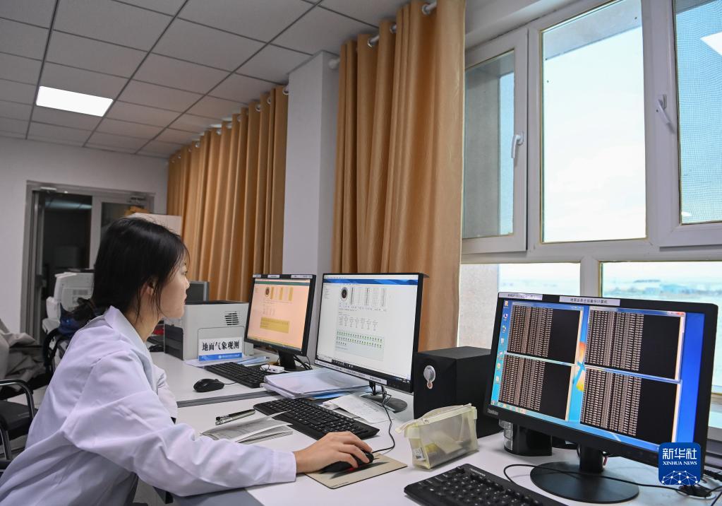 1月8日,阿克達拉國家大氣本底站觀測員董垠希在值班室對相關數據傳輸情況進行檢查。