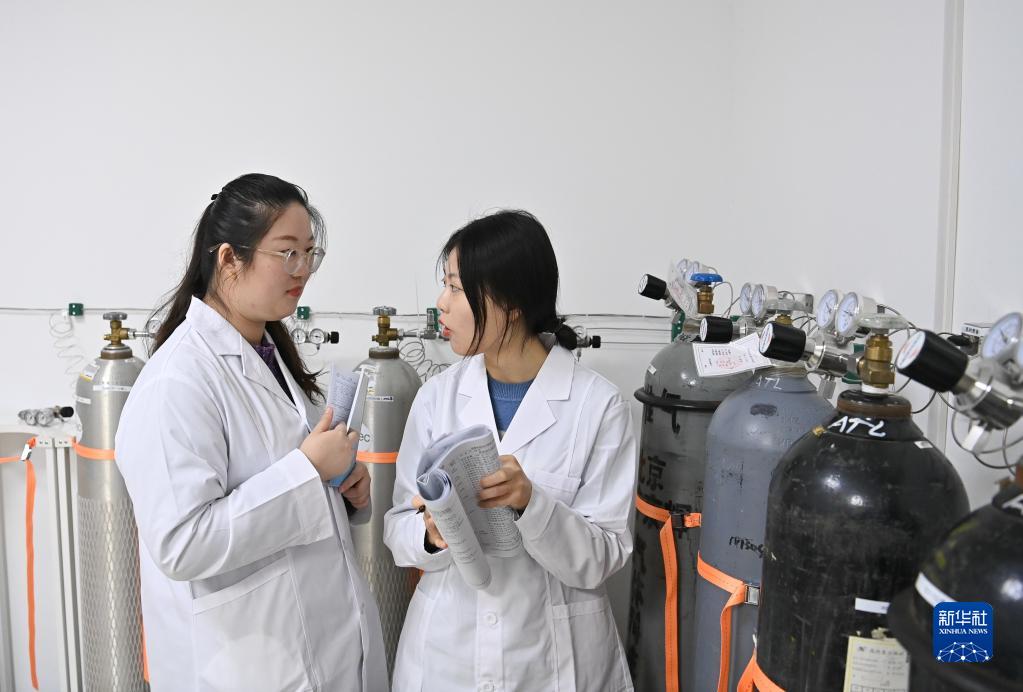 1月8日,阿克達拉國家大氣本底站觀測員董垠希(右)和陶瑞在實驗室填寫值班記錄。