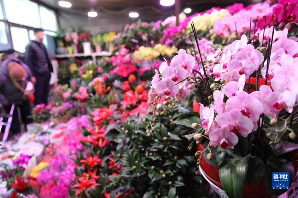 1月14日,市民在河北省承德市雙橋區年貨市場上選購鮮花。