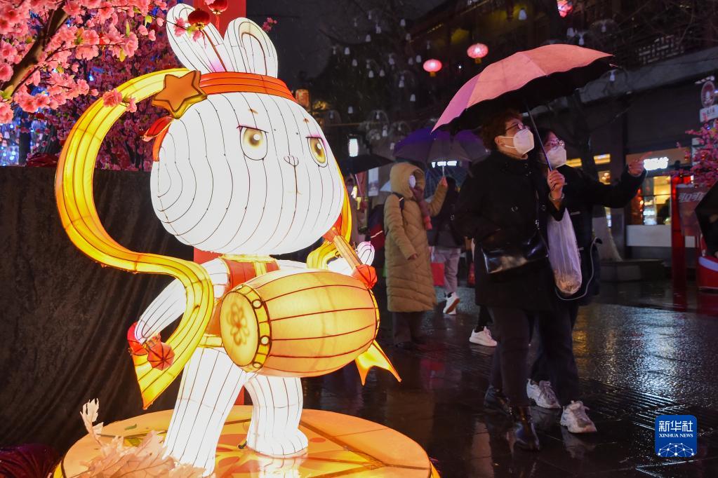 1月14日,游客在南京夫子廟景區(qū)觀燈游覽。