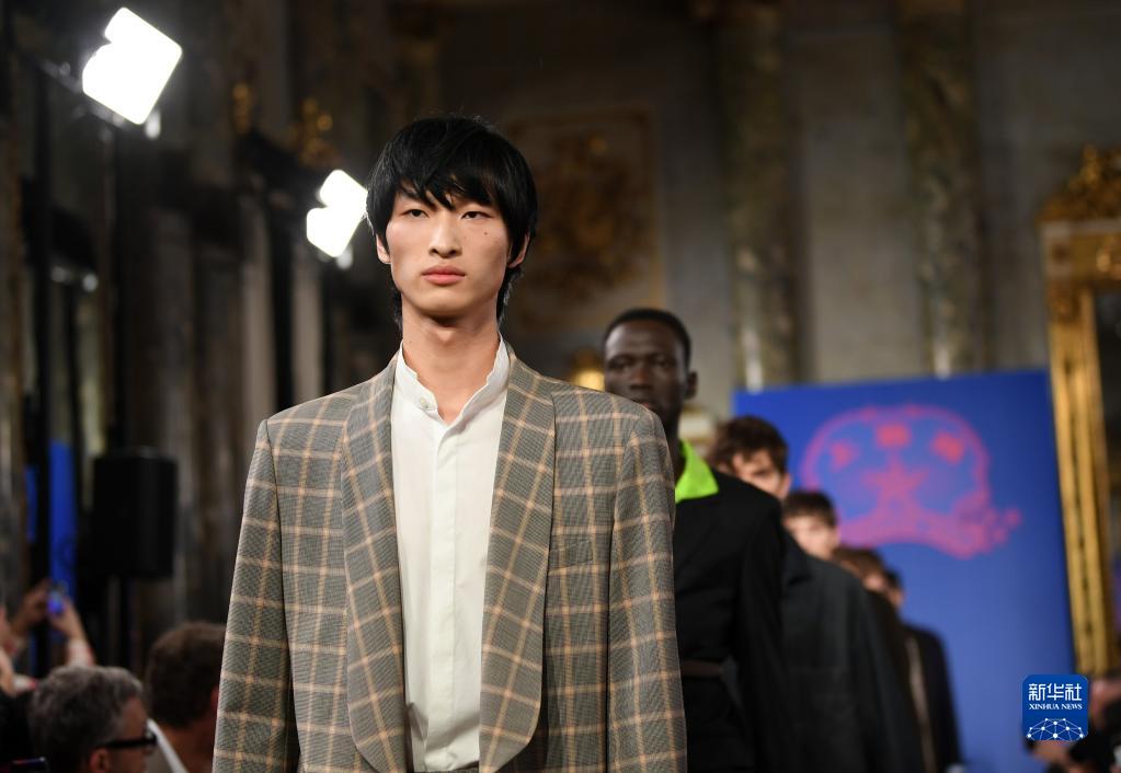1月14日,模特在意大利米蘭男裝周上展示上海灘品牌時裝。