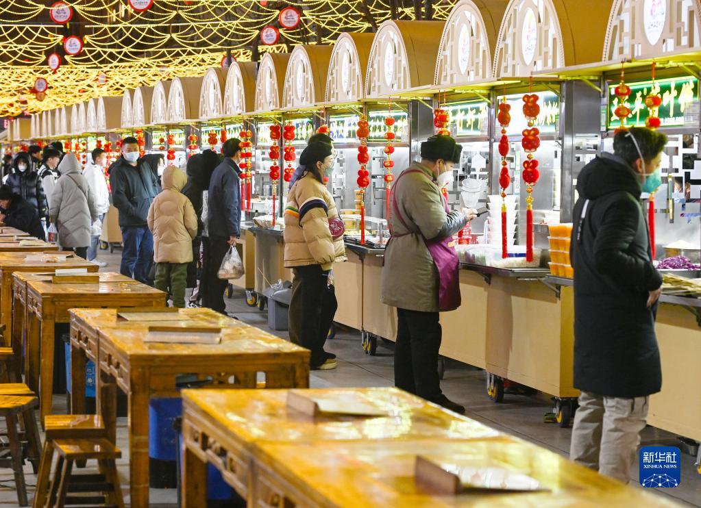 游客在延安二道街夜市選購小吃(1月13日攝)。