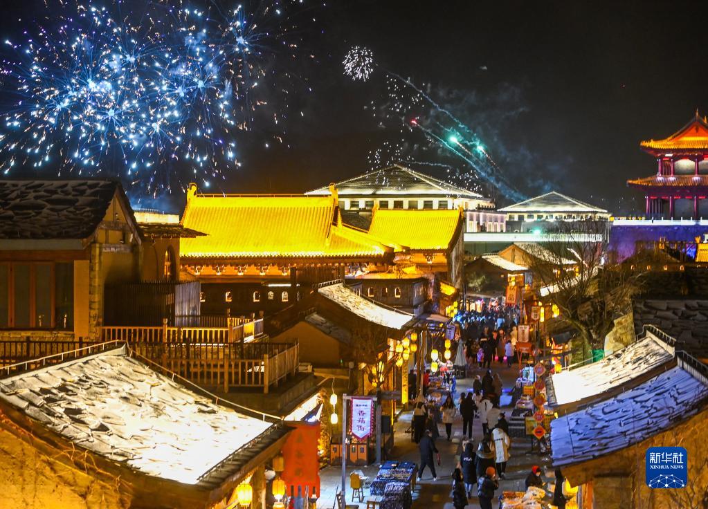 游客在金延安文化旅游產業園內游覽(1月14日攝)。