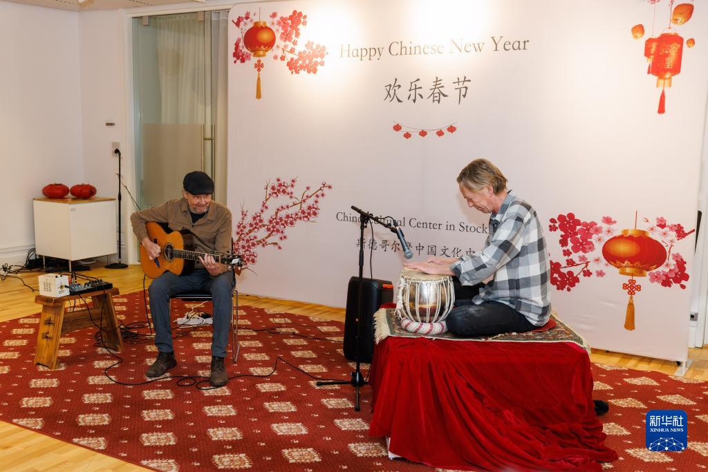 1月14日,音樂家在瑞典斯德哥爾摩中國文化中心舉辦的新春演出上演奏。