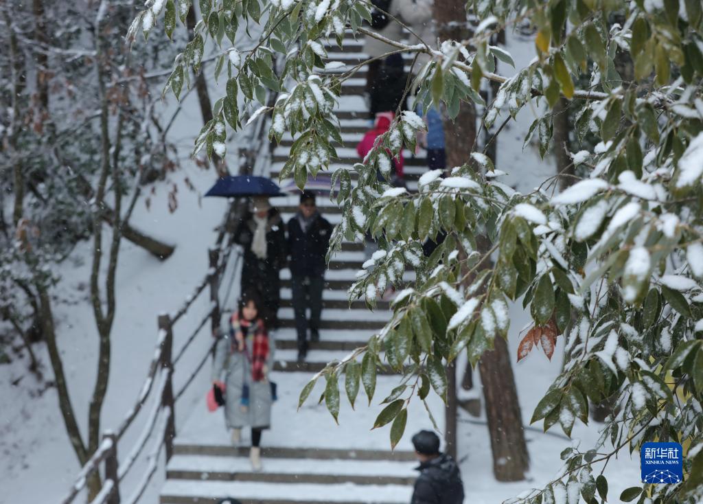 當(dāng)日,湖南張家界國(guó)家森林公園大雪紛飛,銀裝素裹,宛如畫卷,吸引不少游客。