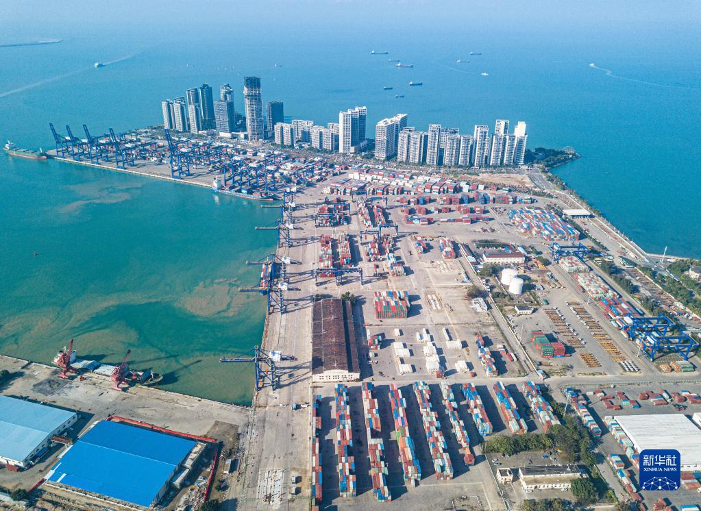 在海南省??谑信臄z的海口港集裝箱碼頭(無人機照片,1月13日攝)。