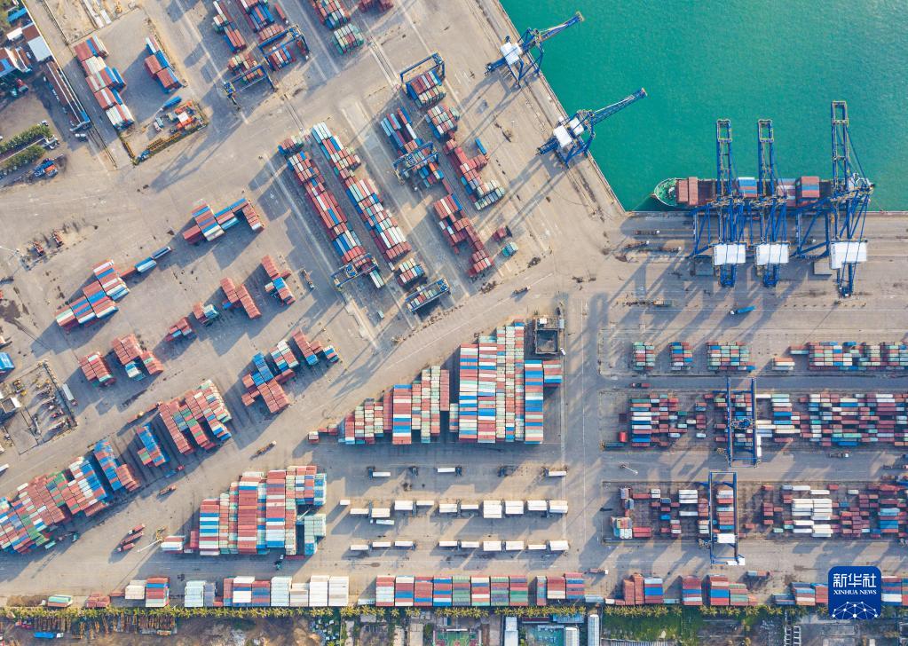 在海南省海口市拍攝的海口港集裝箱碼頭(無人機(jī)照片,1月13日攝)。