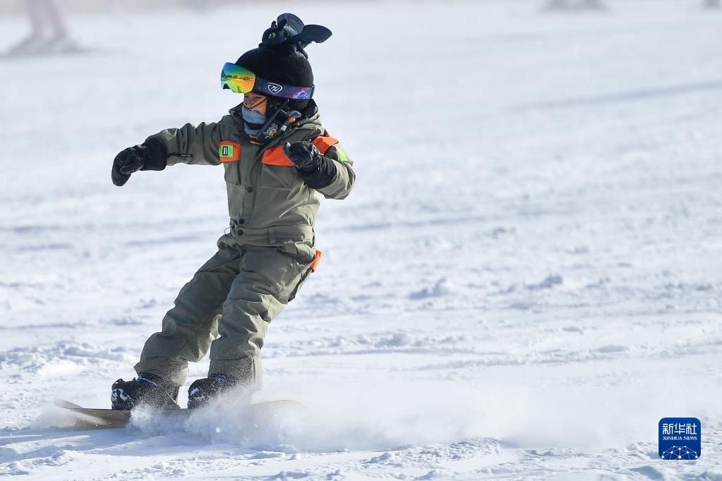 在吉林省吉林市,學生們利用寒假時光參加戶外冰雪運動,盡享冰雪樂趣。
