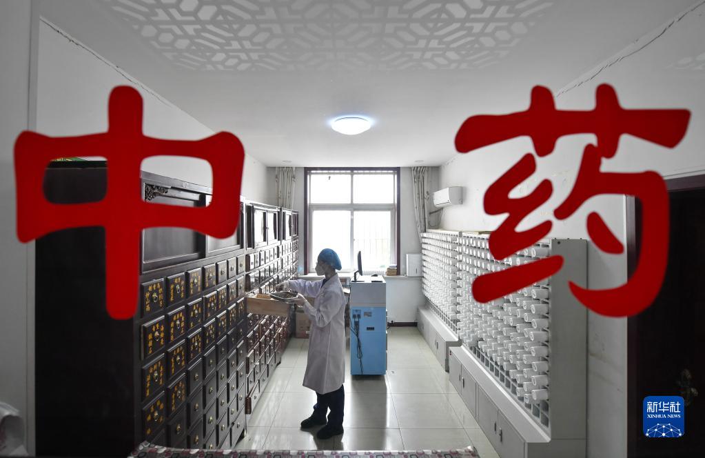 1月15日,唐山市豐南區(qū)黃各莊鎮(zhèn)中心衛(wèi)生院的醫(yī)師在“國(guó)醫(yī)堂”內(nèi)配藥。