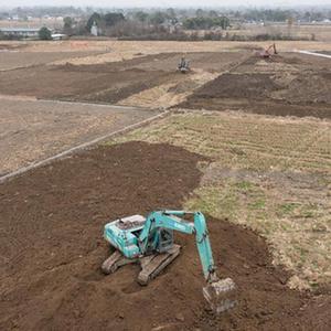 1月14日,在綿竹市孝德鎮清道社區,挖掘機在整治農田(無人機照片)。