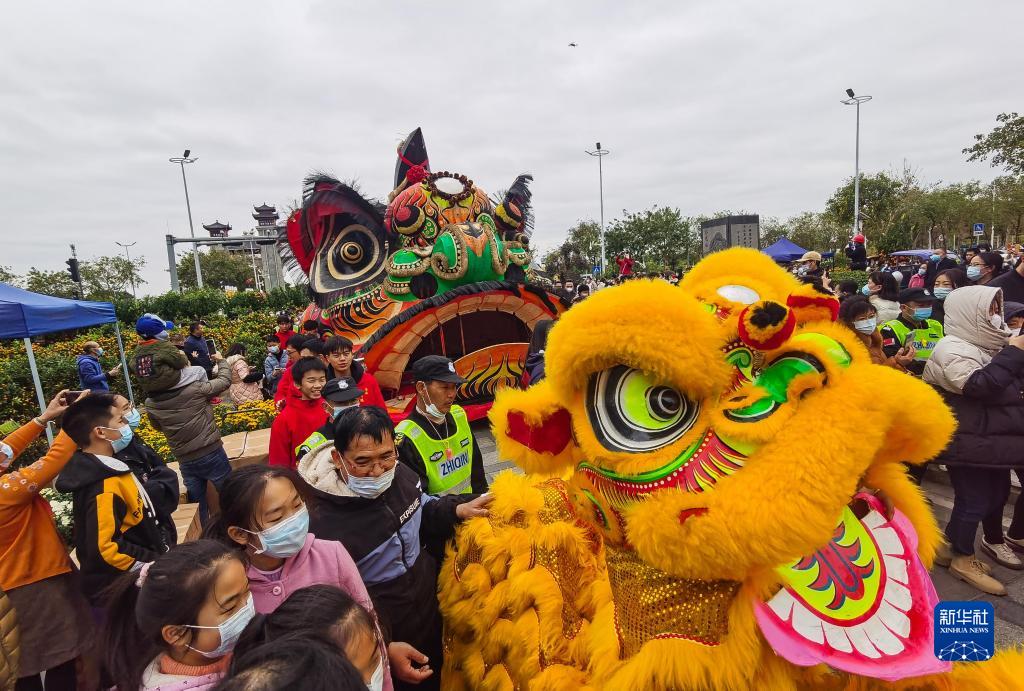 當(dāng)日,在廣東省佛山市南海區(qū)西樵鎮(zhèn),西樵山黃飛鴻獅藝武術(shù)館鎮(zhèn)館之寶“獅王”時(shí)隔8年再次“出獅”巡游,眾多市民游客前來(lái)爭(zhēng)睹“獅王”風(fēng)采。