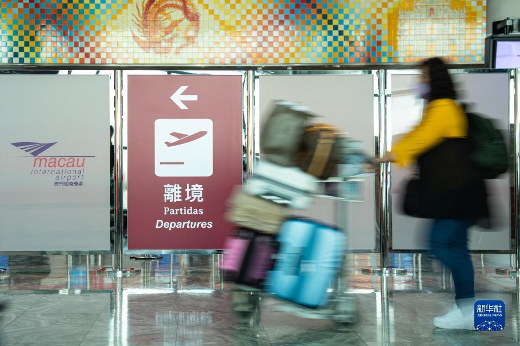 1月14日,旅客在澳門國際機場離境大堂。新華社記者 張金加 攝