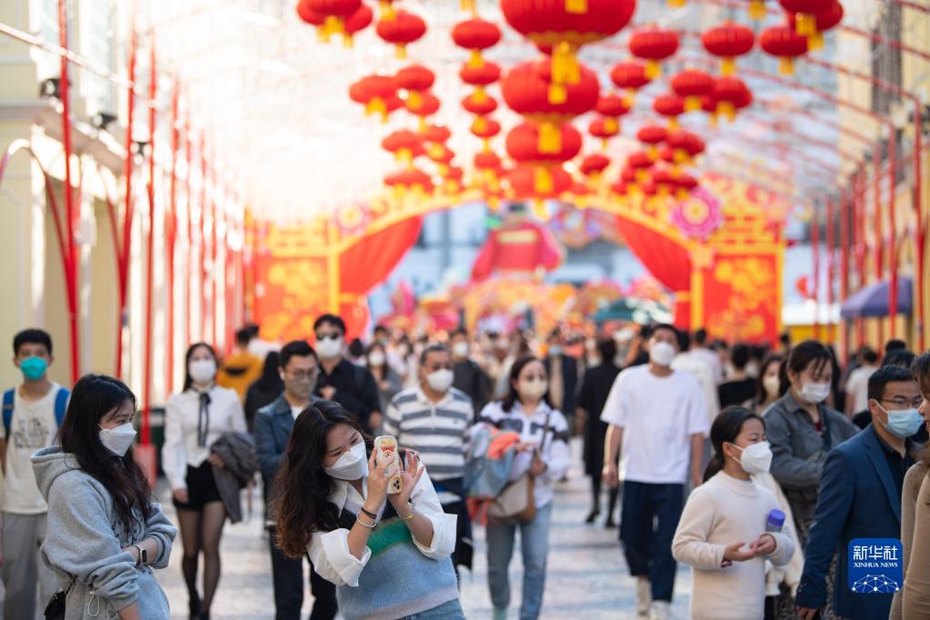 1月14日,游客在澳門議事亭前地游覽。新華社記者 張金加 攝