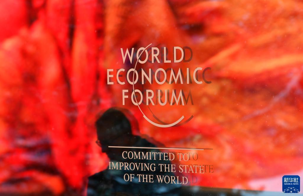 這是1月15日在瑞士達(dá)沃斯拍攝的世界經(jīng)濟(jì)論壇標(biāo)志。