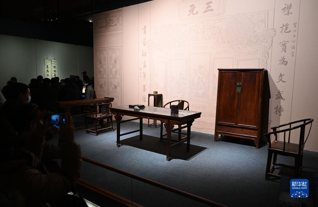1月16日,人們參觀展出的書房場景。