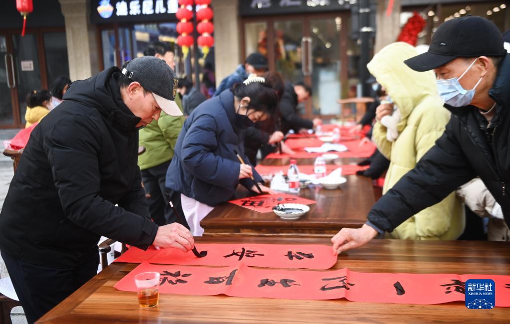 新登鎮(zhèn)宋韻文化特色街區(qū)的送春聯(lián)活動(dòng)(1月16日攝)。
