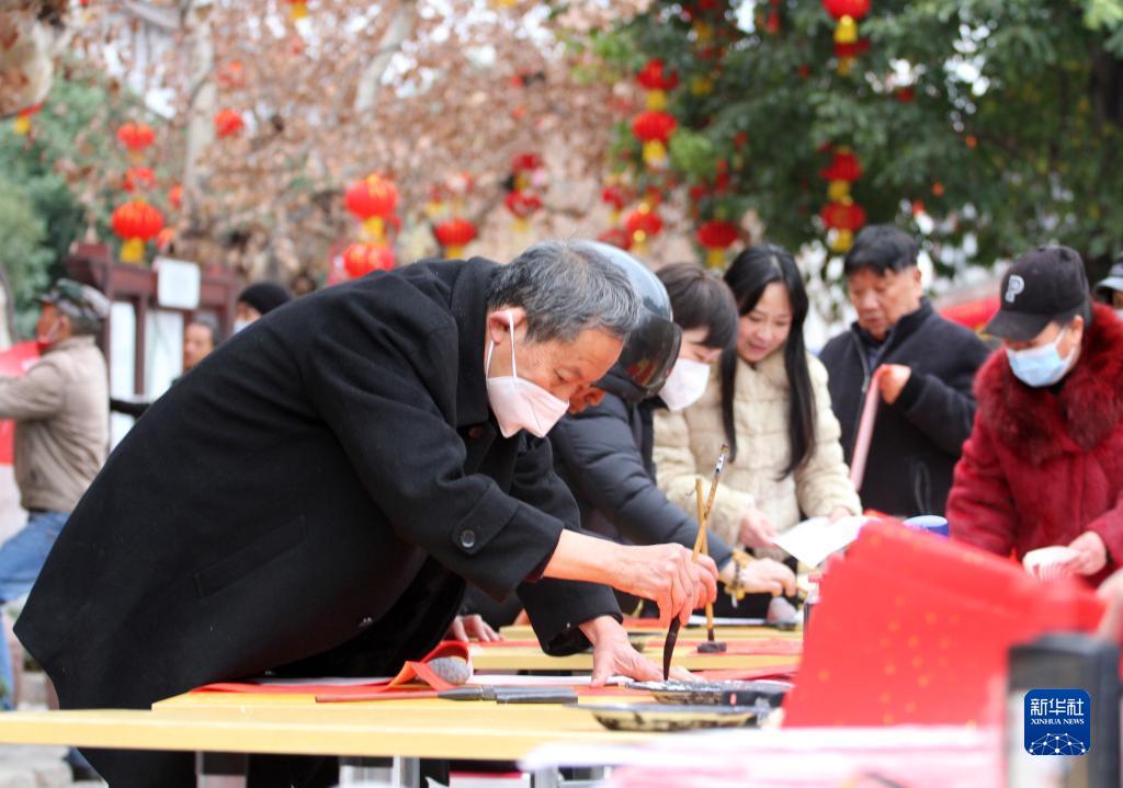 春節臨近,多地組織書法志愿者走進社區、工地等場所,為人們書寫春聯和福字,迎接春節的到來。