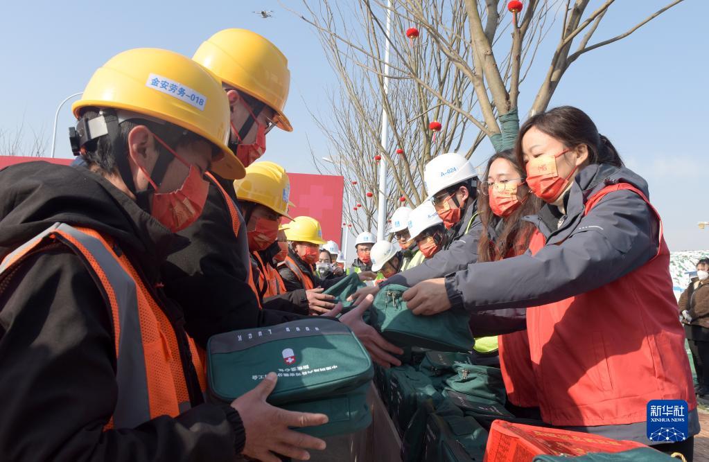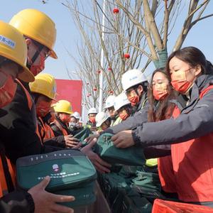 當日,位于安徽合肥市的中建四局六公司建設項目工地組織開展“返鄉送健康、溫暖回家路”活動,為工友們免費送上春節年貨禮包和防疫愛心包等,溫暖農民工的返鄉路。
