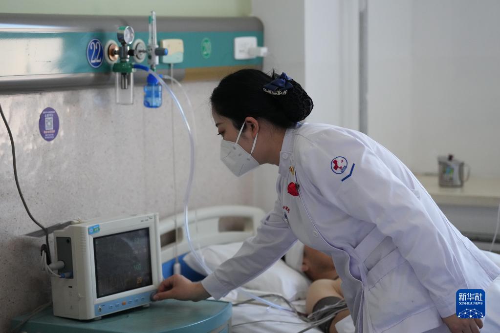 1月16日,盤錦市中心醫院護士查看受傷人員情況。