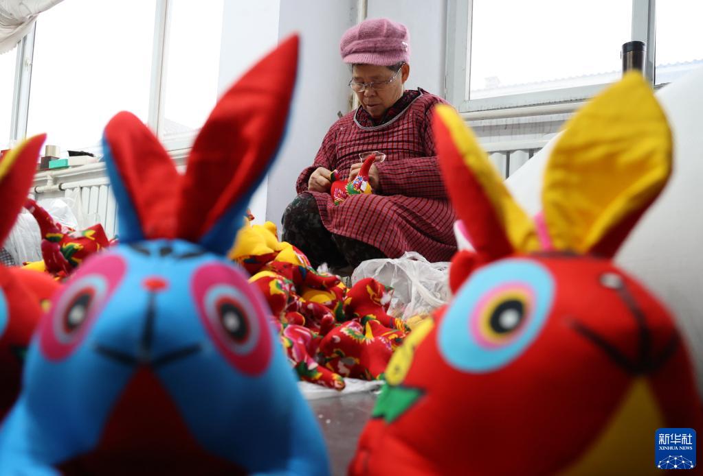 農(nóng)歷兔年春節(jié)將至,以生肖兔為主題的手工藝品訂單增多,需求旺盛。