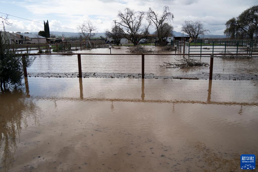 這是1月16日拍攝的美國(guó)加利福尼亞州康特拉科斯塔縣遭洪水侵襲的拜倫地區(qū)。