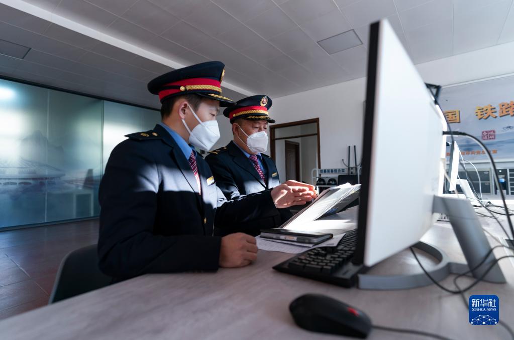 1月15日,丁建華(右)和徒弟姜庭瑞在出車前核對行車注意事項。