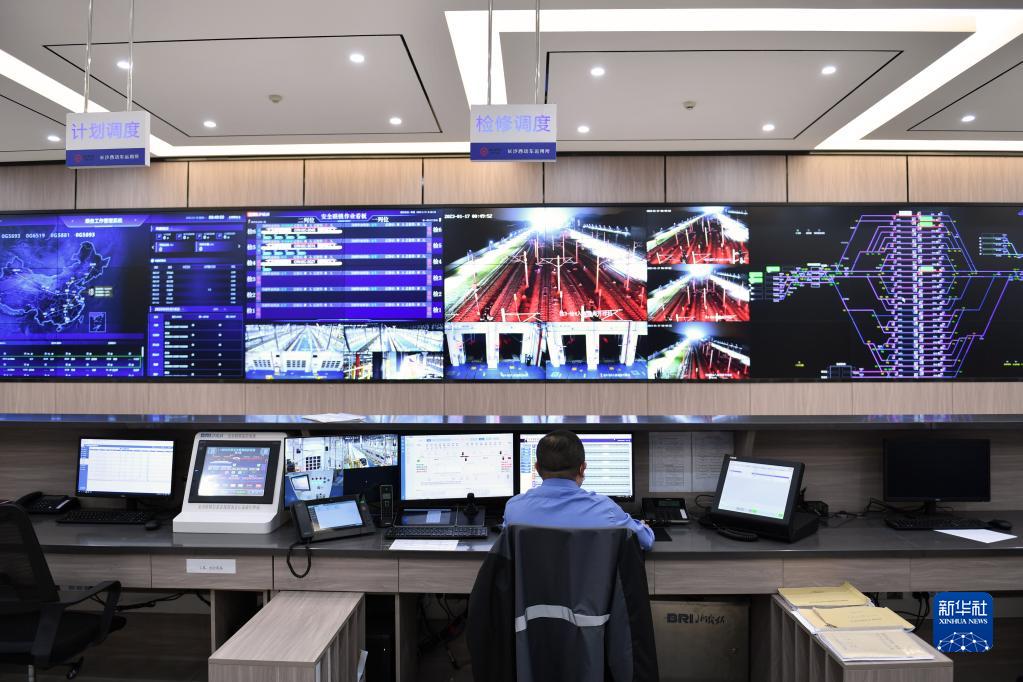 1月17日,工作人員在長沙西動車運用所合署指揮中心值守。