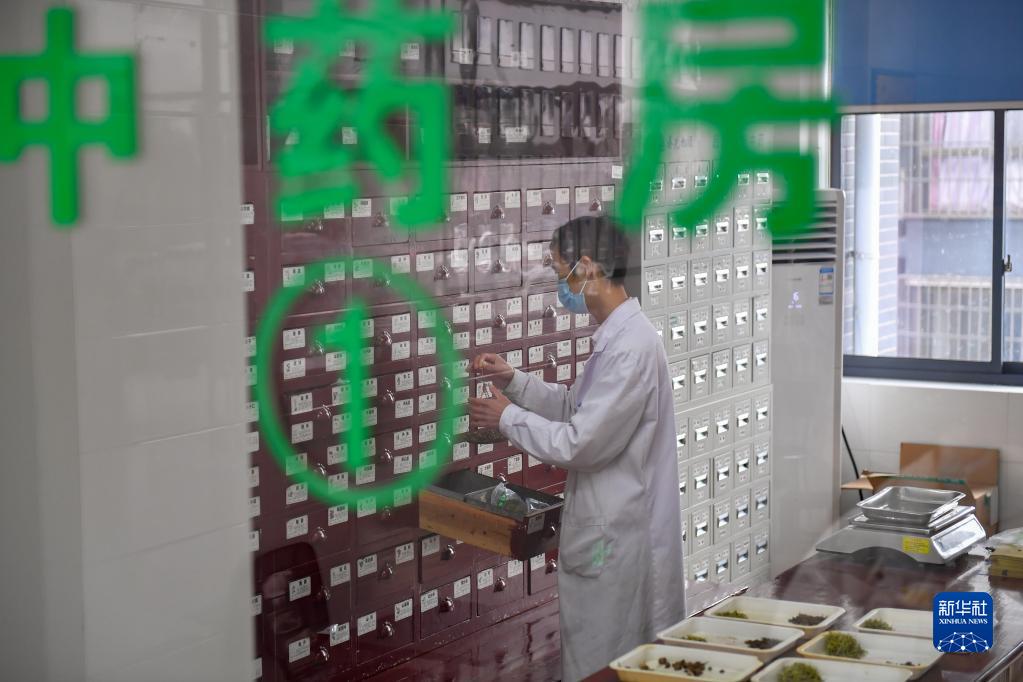 1月17日,在長沙市望城區喬口鎮衛生院的中藥房,藥師在抓配中藥。