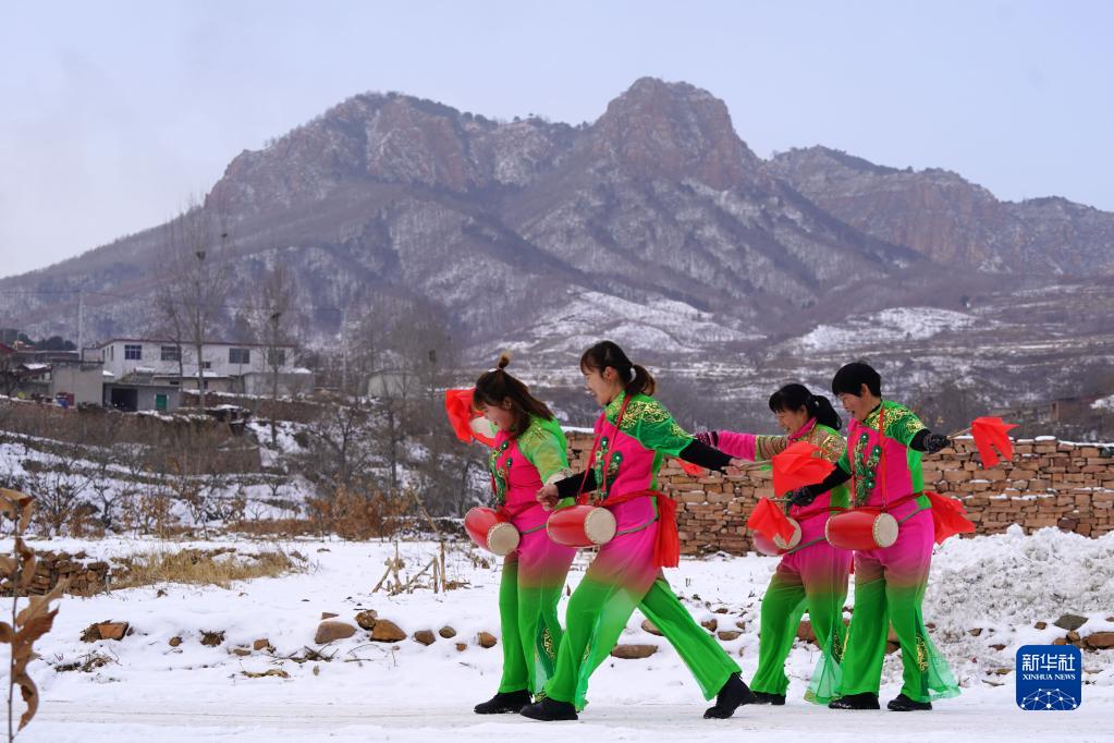 1月17日,河北省邢臺市信都區將軍墓鎮內陽村村民前去排練“村晚”。