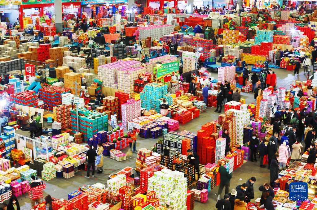1月17日,消費者在浙江義烏果品市場采購年貨。