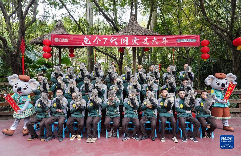 當日,廣州長隆野生動物世界的7代66只考拉大家族集體亮相,喜迎農歷春節。其中,出生于2004年的“淘淘”是首批從澳大利亞漂洋過海來到中國的考拉當中的一只,出生于2022年的“抱抱”是長隆考拉第七代新生寶寶。