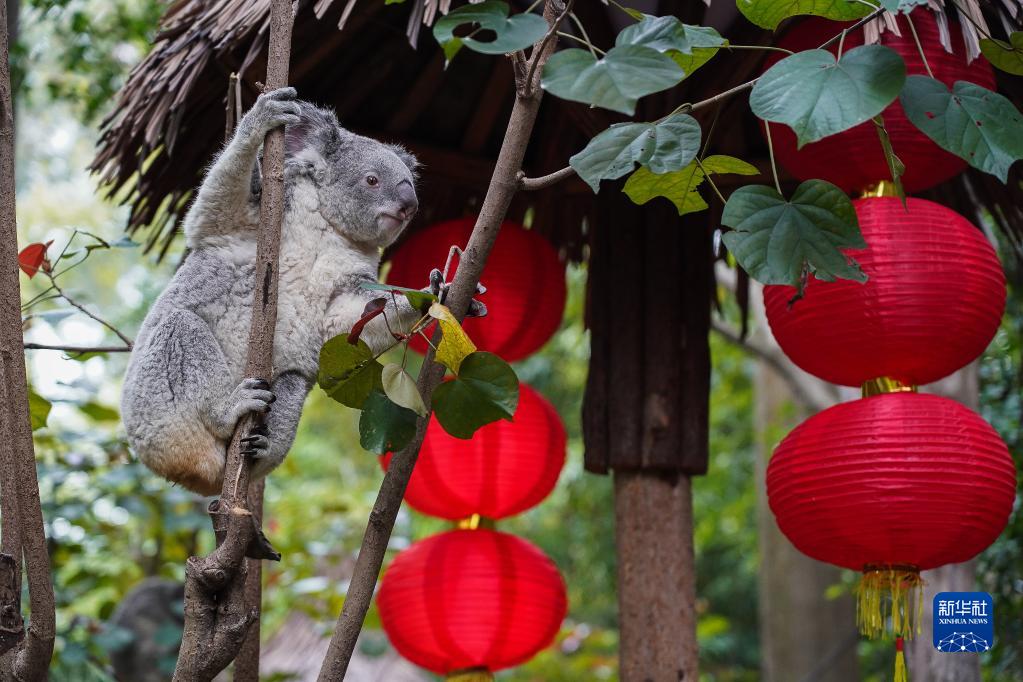 當日,廣州長隆野生動物世界的7代66只考拉大家族集體亮相,喜迎農歷春節。其中,出生于2004年的“淘淘”是首批從澳大利亞漂洋過海來到中國的考拉當中的一只,出生于2022年的“抱抱”是長隆考拉第七代新生寶寶。