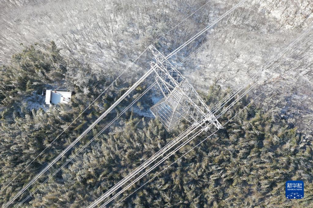 這是1月16日在銅陵市義安區(qū)天門(mén)鎮(zhèn)境內(nèi)拍攝的輸電線(xiàn)路覆冰觀測(cè)站(無(wú)人機(jī)照片)。