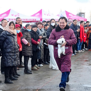 當(dāng)日,四川省華鎣市永興鎮(zhèn)在馬架坪村產(chǎn)業(yè)基地“玉兔園”組織開(kāi)展“玉兔賽跑”趣味活動(dòng),人們?cè)跉g快祥和的氛圍中迎接兔年的到來(lái)。