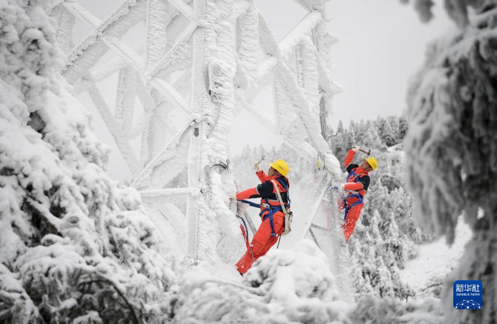 寒潮來襲,地處湖北省西南部的鶴峰縣出現雨雪降溫天氣,高山地區電力設施覆冰積雪嚴重。當地組織應急搶險人員及時進行除雪作業,保障輸電線路安全運行,守護萬家燈火。