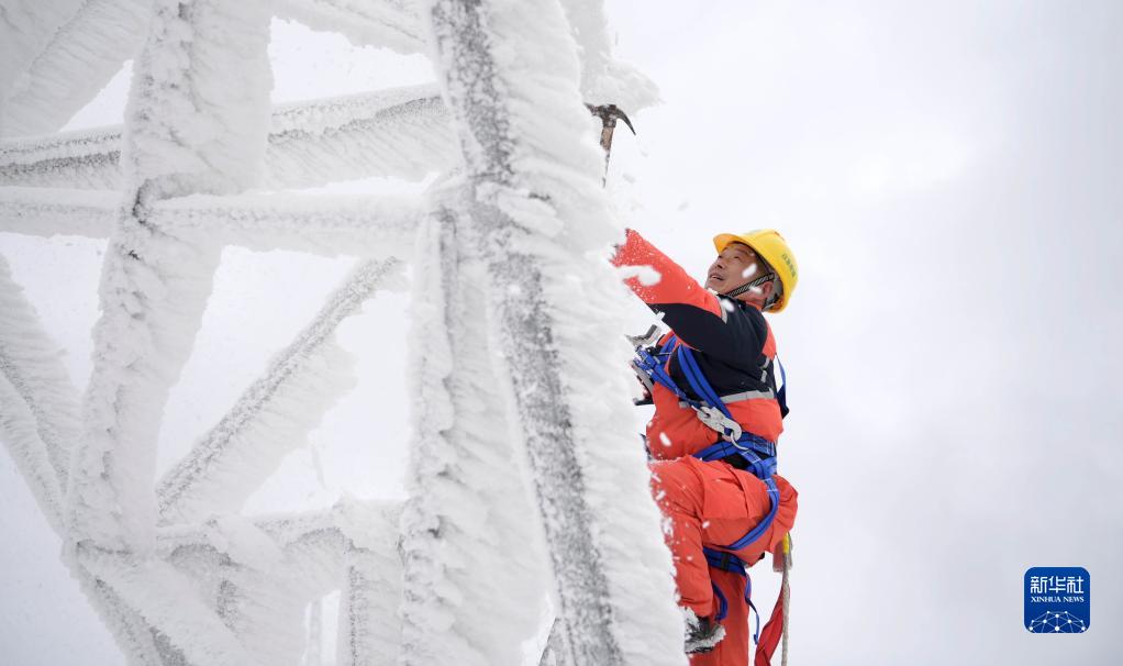寒潮來襲,地處湖北省西南部的鶴峰縣出現雨雪降溫天氣,高山地區電力設施覆冰積雪嚴重。當地組織應急搶險人員及時進行除雪作業,保障輸電線路安全運行,守護萬家燈火。