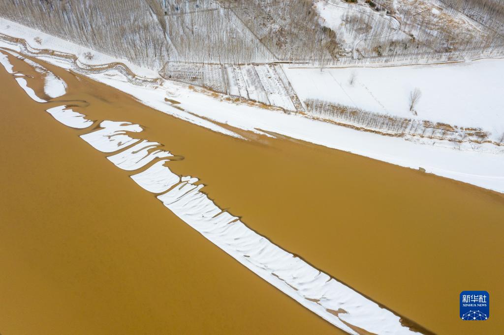 1月14日拍攝的黃河山東高青段雪景(無人機照片)。
